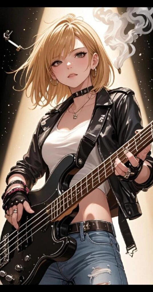 金髪のボブヘアにくわえタバコの女性ベーシストは、ユリ。かつて伝説と呼ばれた『ロクシール』のメンバー。